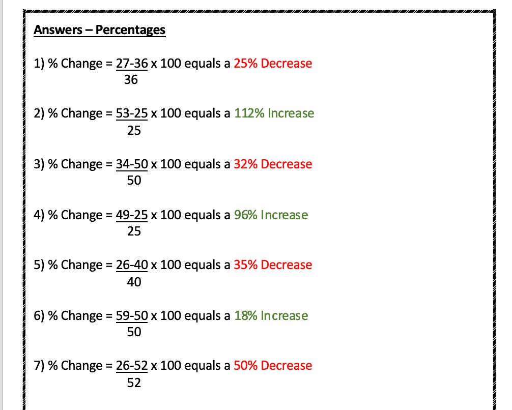 Percent Decrease Elementary Math Steps Examples Questions